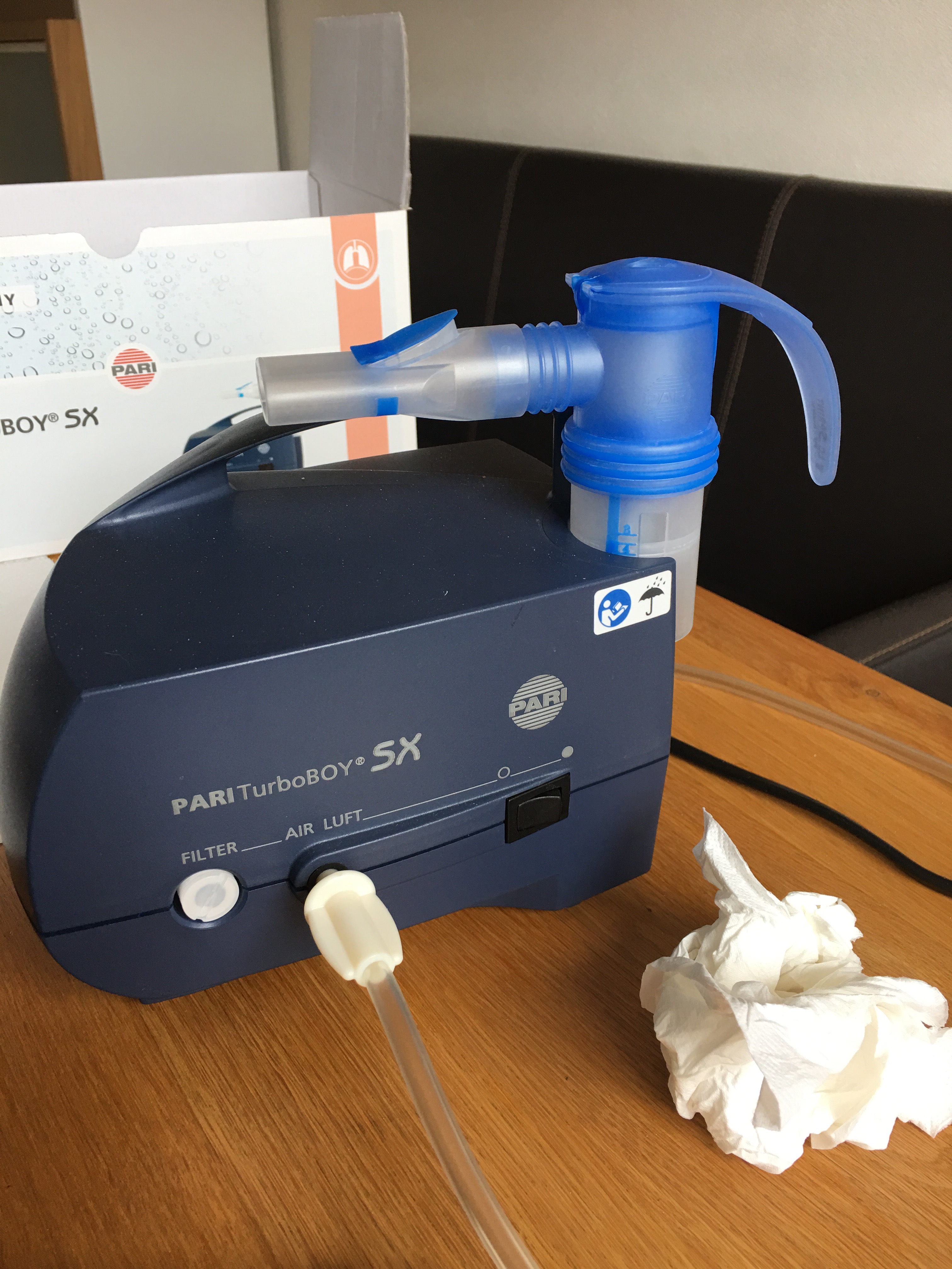 Es ist Frühlingsanfang, die von Oma Luisegunde liebevoll ausgesäten Schneeglöckchen haben sich bereits flächendeckend über noch kargen lehmigen Boden ausgebreitet. Die Amseln sitzen schon in den Startlöchern und tschilpen frohgemut den nahenden Frühling herbei. Der Kater hat die erste Maus des Jahres gefangen, die er dankenswerter Weise im Wohnzimmer aussetzt und die sofort Zuflucht unter dem Kamin sucht. Die Idylle wird nur jäh unterbrochen durch das monotone Surren   des Pari-Boys. Vor dem sitzt leidend der Inscheniör und atmet schwer seufzend die Kochsalzlösung ein und aus…