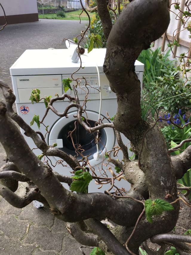 Es ist kurz vor den Osterferien und wir fahren gleich zu Beginn für ein paar Tage an den Gardasee. Zuvor muss ich natürlich packen und vor dem Packen waschen. Ich liebe es zu waschen. Wenn ich die Wäsche nach Farben und Schmutzgrad sortiert habe und die Trommel im gleichmäßigen Rhythmus schwingt, räumt mich das innerlich auf. Da bin ich fast ein bisschen zwanghaft. So ich schiebe die dunkle Farbwäsche in die Trommel und drücke auf Start. Das Wasser schießt ein, aber die Trommel dreht sich nicht mehr. Ich schreie sogleich nach meinen Schwiegereltern. Oma Luisegunde und Opa Adolf geben alles um das Siemens Modell wieder flott zu bekommen, doch vergeblich. Ich gerate leicht in Panik. Der Ingenieur, der von einem schweren Arbeitstag nach Hause kommt, muss es sofort richten. Doch auch bei ihm vergebens. Die gute alte Siemens ist dem Herz- äh dem Trommeltod gestorben. Da ich als Lehrerin schon immer gut Arbeiten verteilen konnte, bringe ich meine Wäsche schnurstracks bei den Freundinnen in der näheren Umgebung unter.